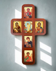 Christ the Teacher Icon Home Shrine | The classic design of this wooden shrine is the perfect setting for this colorful traditional icon of Christ the Teacher. Display it self-standing on your home shrine or hung on the wall. Place a votive candle, or your rosary or prayer requests on the 3" shelf. 4 3/4" x 8 1/2". Shipping $12.95. Vot... | ||