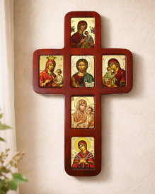 Sacred Heart Icon | A unique iconographic presentation of this most beloved theme. The Heart of Christ is represented burning with love for mankind most vividly manifest in His suffering and sacrifice on the Cross in these icons of Christ. Shop for these and other icons of Chr... | ||