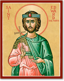 Saint Edward the Martyr Icon | Saint Edward the Martyr was a tenth-century king of England whose short reign ended in betrayal and violent death. The son of King Edgar, he inherited a kingdom marked by political rivalries, and his youth made him vulnerable to court intrigue. Though he ruled only briefly, Saint Edward was remember... |