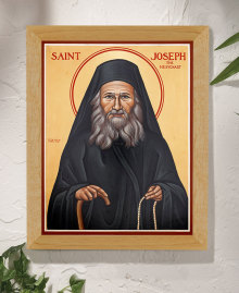 St. Joseph the Hesychast Original Icon 14" tall | Created by American iconographer Brother Simeon Davis, this original icon of Saint Joseph the Hesychast, the renowned 20th century Athonite father, exemplifies the radiant colors, fine detail, and fidelity to classical iconography that has made the Monastery Icons collection the most beloved ... |
