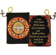 Holy Spirit Rosary Pouches - set of 6 | A beautiful and affordable presentation gift! This colorful and affordable two-sided tapestry pouch depicts a colorful image of the dove of the Holy Spirit in an ornamental border on one side, and on the other side the verse "Come Holy Spirit, fill the hearts of the faithful and kindle in them the f... |