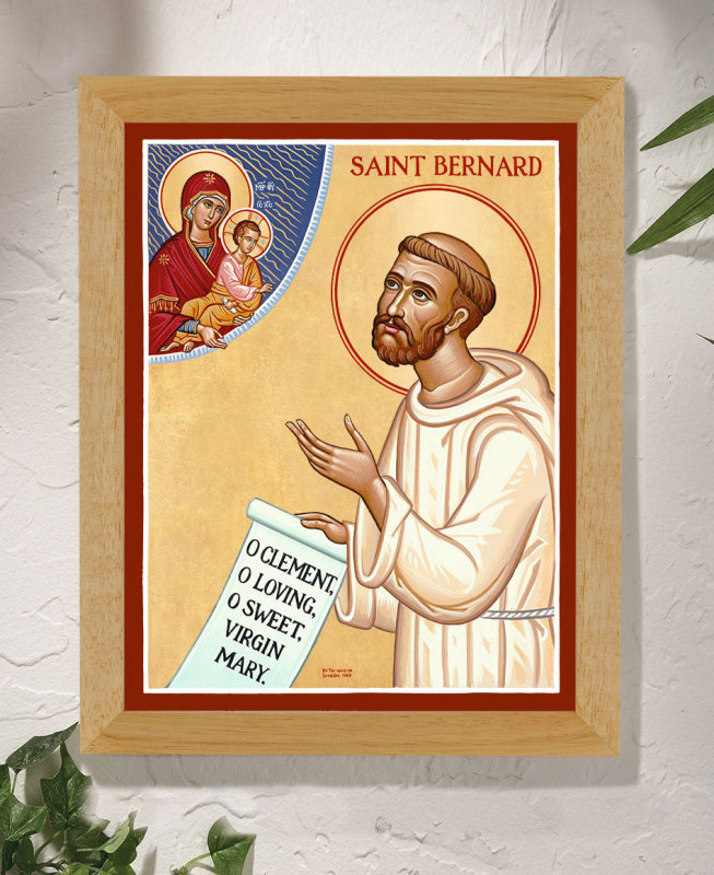 SOLD Created by American iconographer Brother Simeon Davis, this original icon of Saint Bernard of Clairvaux exemplifies the radiant colors, fine detail, and fidelity to classical iconography that has made the Monastery Icons collection the most beloved Christian art over the past forty-one years. This icon is one of a kind and will no longer be available once it is sold.