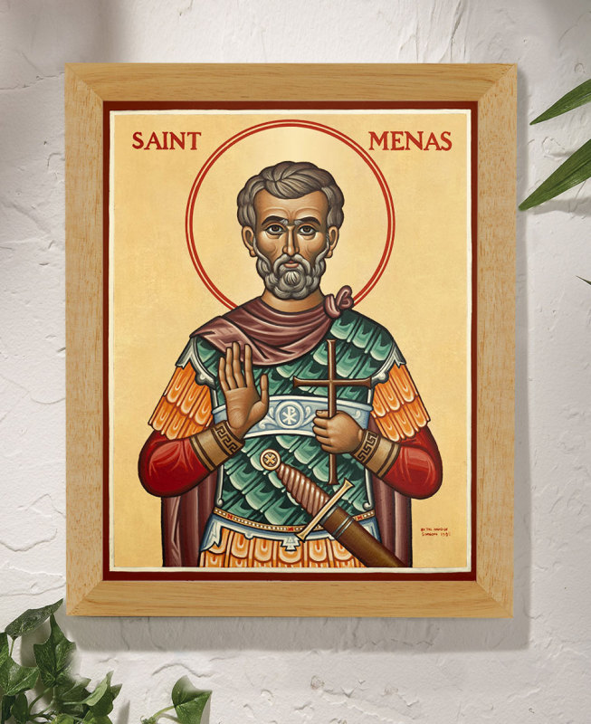 Created by American iconographer Brother Simeon Davis, this original icon of Saint Menas the Martyr exemplifies the radiant colors, fine detail, and fidelity to classical iconography that has made the Monastery Icons collection the most beloved Christian art over the past forty-one years. This icon is one of a kind and will no longer be available once it is sold.