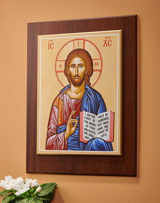 A new format that you can choose for any icon in the Monastery Icons collection. These enhanced versions of our popular cathedral-size plaques make sanctuary adornments your parish will cherish for years to come. Each Deluxe Mounted Icon is mounted on another larger back plaque, with a wood grain finish. Available in three sizes. Made on demand, allow 5-7 weeks for shipment.