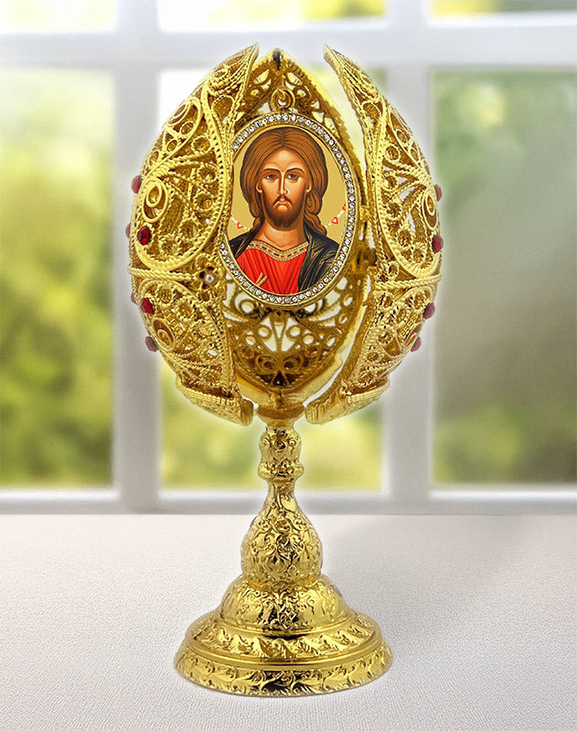 Russian Christ Icon Filigree Egg