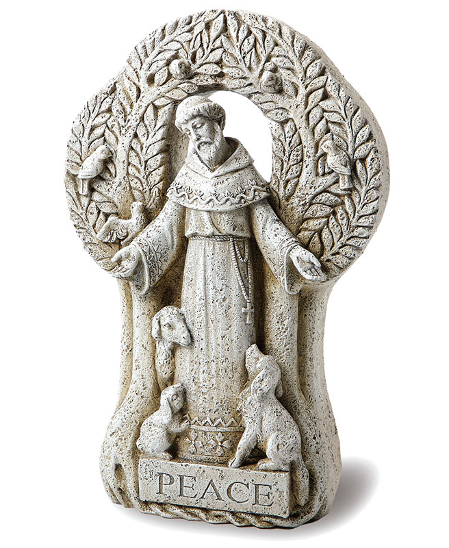 This poignant portrait of the apostle of peace can be hung indoors or outdoors and adds a special to your garden or outdoor sanctuary. Our Saint Francis Indoor-Outdoor Wall Plaque is created from resinware, 12" high. Discover even more inspired indoor / outdoor garden statuary at Monastery Icons.